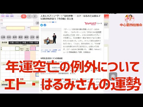 今回はヤフーニュースで格闘技に挑戦していると報じられたエド・はるみさんを鑑定しながら、年運空亡時の例外について説明します。